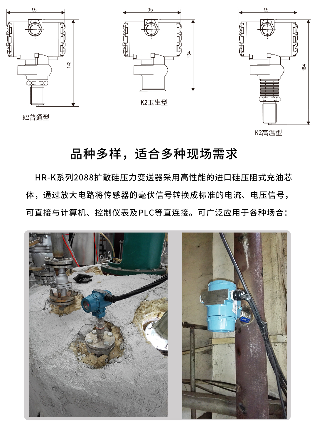 虹潤公司是專業(yè)生產(chǎn)壓力變送器的國家專精特新“小巨人”企業(yè),生產(chǎn)的擴散硅壓力變送器,具有精度高,穩(wěn)定性好,響應(yīng)速度快,高可靠性,抗過載和抗沖擊能力強,安裝方便等特點。產(chǎn)品獲得一種數(shù)字顯示低功耗壓力表、一種信號發(fā)生器裝置等2項國家發(fā)明專利,主持起草工業(yè)過程控制系統(tǒng)用模擬輸入兩位或多位輸出儀表、工業(yè)過程測量和控制系統(tǒng)用壓力/差壓變送器等2項國家標(biāo)準(zhǔn),通信系統(tǒng)多通道數(shù)據(jù)采集控制終端規(guī)范軍用標(biāo)準(zhǔn),以及現(xiàn)場設(shè)備集成等5項智能制造國家標(biāo)準(zhǔn)。參與國際5G標(biāo)準(zhǔn)制定,取得數(shù)顯壓力表等2項相關(guān)軟件著作權(quán)。產(chǎn)品廣泛應(yīng)用于化工、食品、制藥、電力、設(shè)備配套、供暖、水處理、樓宇等行業(yè),需精準(zhǔn)測量流體壓力的現(xiàn)場。