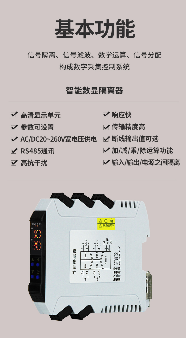 虹潤公司是專業(yè)生產(chǎn)隔離器的國家專精特新“小巨人”企業(yè)。生產(chǎn)的導軌式智能隔離器 ,具有高清顯示單元,參數(shù)可設(shè)置,寬電源供電,響應(yīng)快,帶RS485通訊等特點。產(chǎn)品獲得信號隔離器、一種二端子模塊、無源信號隔離器等3項國家發(fā)明專利,主持起草現(xiàn)場設(shè)備工具(FDT)接口規(guī)范、工業(yè)過程測量和控制系統(tǒng)用隔離式安全柵、工業(yè)過程測量和控制系統(tǒng)用配電器等3項國家標準,以及通信系統(tǒng)多通道數(shù)據(jù)采集控制終端規(guī)范軍用標準,參與國際5G標準制定,取得智能隔離器等2項相關(guān)軟件著作權(quán)。產(chǎn)品廣泛應(yīng)用于電力、石化,冶金、制藥、水處理、機械配套等各種工業(yè)現(xiàn)場。