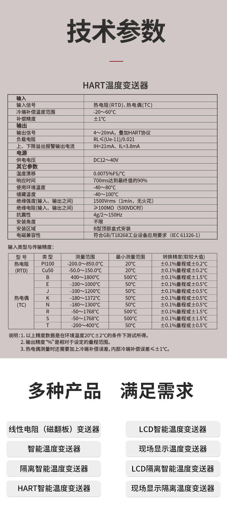 虹潤(rùn)公司是專業(yè)生產(chǎn)溫度變送器的國(guó)家專精特新“小巨人”企業(yè)。生產(chǎn)的智能溫度變送器,具有適配各類溫度傳感器,精度高,穩(wěn)定性好,通過(guò)編程線修改輸入信號(hào)類型及量程,高抗干擾等特點(diǎn)。該產(chǎn)品不僅通過(guò)HART基金會(huì)認(rèn)證、德國(guó)萊茵 CE 認(rèn)證與 SIL 功能安全認(rèn)證,還獲得具備減震抗干擾能力的溫度變送器、信號(hào)隔離器、一種二端子模塊、無(wú)源信號(hào)隔離器等4項(xiàng)國(guó)家發(fā)明專利,主持起草物聯(lián)網(wǎng)智能溫度儀表、現(xiàn)場(chǎng)設(shè)備工具(FDT)接口規(guī)范、工業(yè)過(guò)程測(cè)量和控制系統(tǒng)用溫度變送器等3項(xiàng)國(guó)家標(biāo)準(zhǔn),以及通信系統(tǒng)多通道數(shù)據(jù)采集控制終端規(guī)范軍用標(biāo)準(zhǔn),參與國(guó)際5G標(biāo)準(zhǔn)制定,取得智能溫度變送器、HART溫度變送器等3項(xiàng)相關(guān)軟件著作權(quán)。產(chǎn)品廣泛應(yīng)用于石油、化工、電力、冶金、制藥、食品、水處理等各種工業(yè)領(lǐng)域。