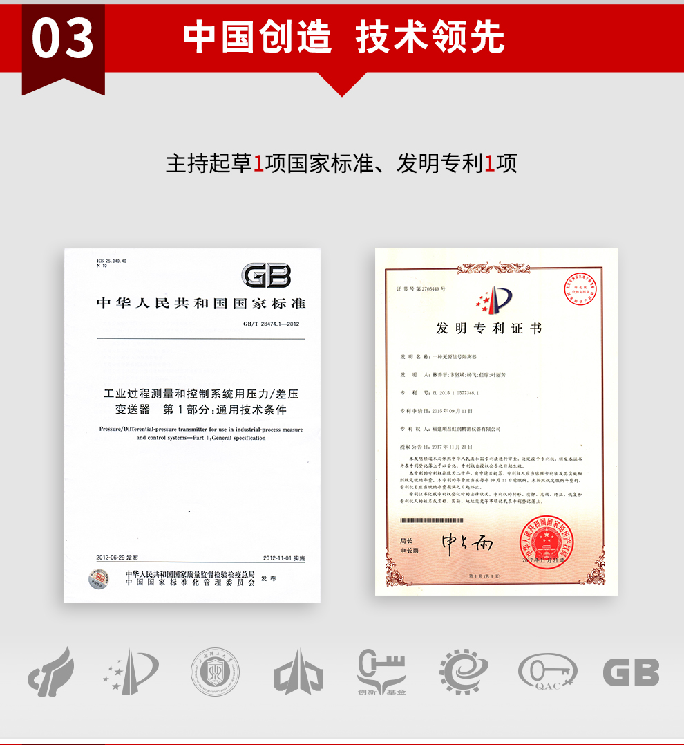 虹潤公司是專業(yè)生產(chǎn)壓力變送器的國家專精特新“小巨人”企業(yè),生產(chǎn)的小巧型壓力變送器,具有采用進口芯體,量程范圍寬,抗沖擊抗震動,多種螺紋接口,性能穩(wěn)定等特點。產(chǎn)品獲得一種數(shù)字顯示低功耗壓力表、一種信號發(fā)生器裝置等2項國家發(fā)明專利,主持起草工業(yè)過程控制系統(tǒng)用模擬輸入兩位或多位輸出儀表、工業(yè)過程測量和控制系統(tǒng)用壓力/差壓變送器等2項國家標準,通信系統(tǒng)多通道數(shù)據(jù)采集控制終端規(guī)范軍用標準,以及現(xiàn)場設(shè)備集成等5項智能制造國家標準,參與國際5G標準制定,取得數(shù)顯壓力表等2項相關(guān)軟件著作權(quán)。產(chǎn)品廣泛應用于化工、食品、制藥、電力、設(shè)備配套、供暖、水處理、樓宇等行業(yè),需精準測量流體壓力的現(xiàn)場。