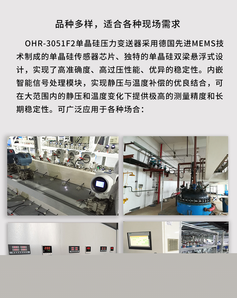 虹潤公司是專業(yè)生產(chǎn)壓力變送器的國家專精特新“小巨人”企業(yè),生產(chǎn)的單晶硅壓力變送器,具有高精度,小溫漂,性能穩(wěn)定,帶HART通訊,抗干擾能力強,自診斷功能等特點。產(chǎn)品獲得一種數(shù)字顯示低功耗壓力表、一種信號發(fā)生器裝置等2項國家發(fā)明專利,主持起草工業(yè)過程控制系統(tǒng)用模擬輸入兩位或多位輸出儀表、工業(yè)過程測量和控制系統(tǒng)用壓力/差壓變送器等2項國家標準,通信系統(tǒng)多通道數(shù)據(jù)采集控制終端規(guī)范軍用標準,以及現(xiàn)場設(shè)備集成等5項智能制造國家標準。參與國際5G標準制定,取得數(shù)顯壓力表等2項相關(guān)軟件著作權(quán)。產(chǎn)品廣泛應(yīng)用于化工、食品、制藥、電力、設(shè)備配套、供暖、水處理、樓宇等行業(yè),需精準測量流體壓力的現(xiàn)場。