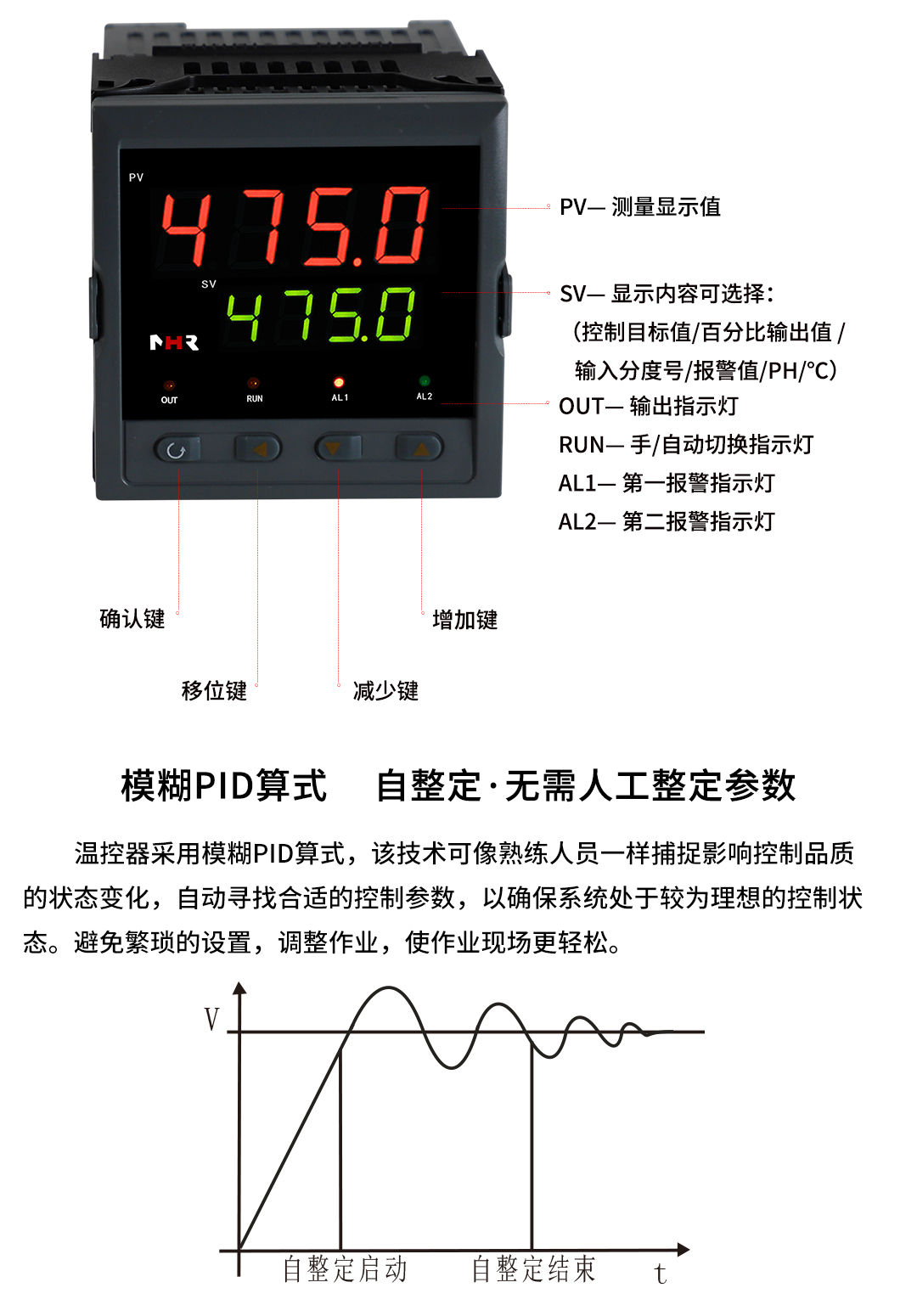 虹潤公司是專業(yè)生產(chǎn)溫控器的國家專精特新“小巨人”企業(yè)。生產(chǎn)的傻瓜式智能溫控器,具有傻瓜式操作,真正人工智能算式,無需人工整定參數(shù),控制精度可達±0.1°C,高抗干擾等特點。產(chǎn)品獲得模糊PID控制儀及控制方法、人工智能調(diào)節(jié)器、智能化控制器、移相觸發(fā)控制器、閥門自動手動無擾動操作控制方法及裝置等5項國家發(fā)明專利,主持起草工業(yè)過程控制系統(tǒng)用模擬輸入兩位或多位輸出儀表、物聯(lián)網(wǎng)智能溫度儀表通用技術(shù)條件、工業(yè)過程測量和控制系統(tǒng)用智能調(diào)節(jié)器等3項國家標準,以及通信系統(tǒng)多通道數(shù)據(jù)采集控制終端規(guī)范軍用標準,參與國際5G標準制定,取得傻瓜式模糊PID調(diào)節(jié)儀等3項相關(guān)軟件著作權(quán)。產(chǎn)品廣泛應(yīng)用于電力、石化,冶金、制藥、食品等幾乎所有工業(yè)現(xiàn)場,實現(xiàn)精準控溫,保障生產(chǎn)安全與質(zhì)量。
