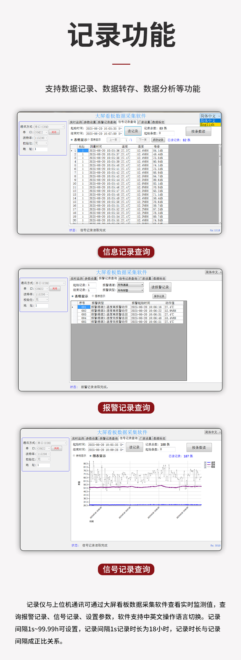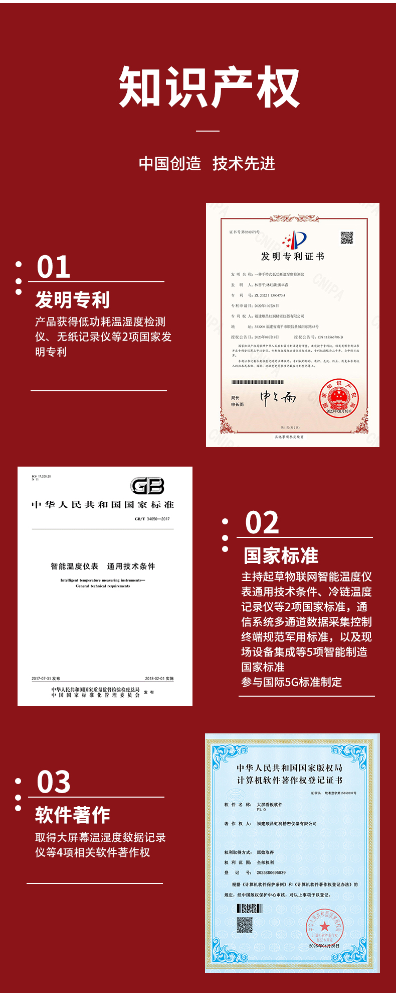 虹潤公司是專業(yè)生產環(huán)境監(jiān)測儀表的國家專精特新“小巨人”企業(yè)。生產的大屏噪音溫濕度記錄儀,具有高清大屏顯示,數(shù)據(jù)記錄與轉存,同步觸發(fā)可靠預警,RS485或以太網(wǎng)通訊等特點。產品獲得一種手持式低功耗溫濕度檢測儀、無紙記錄儀等2項國家發(fā)明專利,主持起草物聯(lián)網(wǎng)智能溫度儀表通用技術條件、冷鏈溫度記錄儀等2項國家標準,通信系統(tǒng)多通道數(shù)據(jù)采集控制終端規(guī)范軍用標準,以及現(xiàn)場設備集成等5項智能制造國家標準,參與國際5G標準制定,取得大屏幕溫濕度數(shù)據(jù)記錄儀等3項相關軟件著作權。產品廣泛應用于電子制造、醫(yī)療科研、倉儲管理、畜牧養(yǎng)殖、建筑工程等諸多領域。