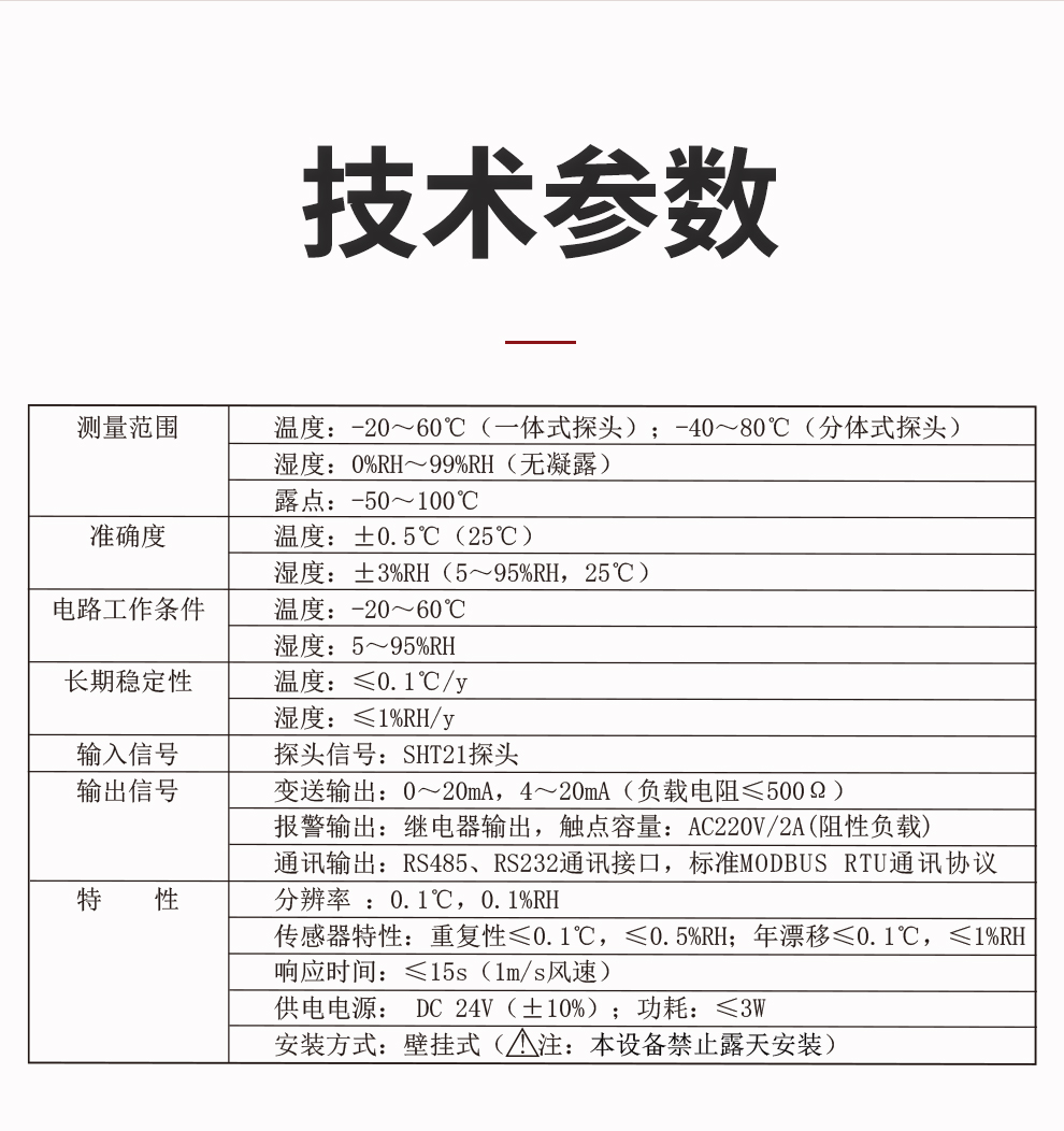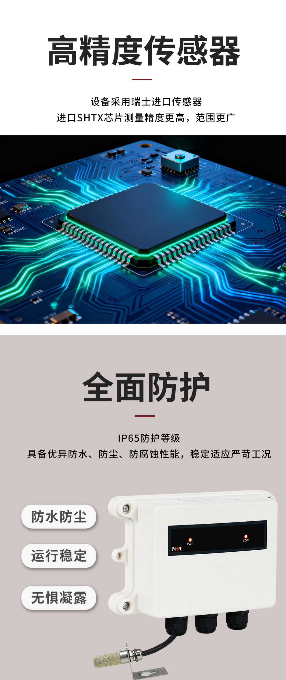 虹潤公司是專業(yè)生產(chǎn)環(huán)境監(jiān)測儀表的國家專精特新“小巨人”企業(yè)。生產(chǎn)的一體式溫濕度變送器,具有溫度、濕度、露點高精準的測量與變送,報警繼電器輸出,RS485/RS232通訊,IP65防護等級等特點。產(chǎn)品獲得一種手持式低功耗溫濕度檢測儀、大屏幕溫濕度記錄儀等2項國家發(fā)明專利,主持起草物聯(lián)網(wǎng)智能溫度儀表通用技術(shù)條件、冷鏈溫度記錄儀等2項國家標準,以及通信系統(tǒng)多通道數(shù)據(jù)采集控制終端規(guī)范軍用標準,以及現(xiàn)場設備集成等5項智能制造國家標準,參與國際5G標準制定,取得溫濕度儀表等3項相關(guān)軟件著作權(quán)。產(chǎn)品廣泛應用于工業(yè)現(xiàn)場、農(nóng)業(yè)大棚、倉儲物流、地下管廊、養(yǎng)殖孵化、配電機房等諸多領(lǐng)域。