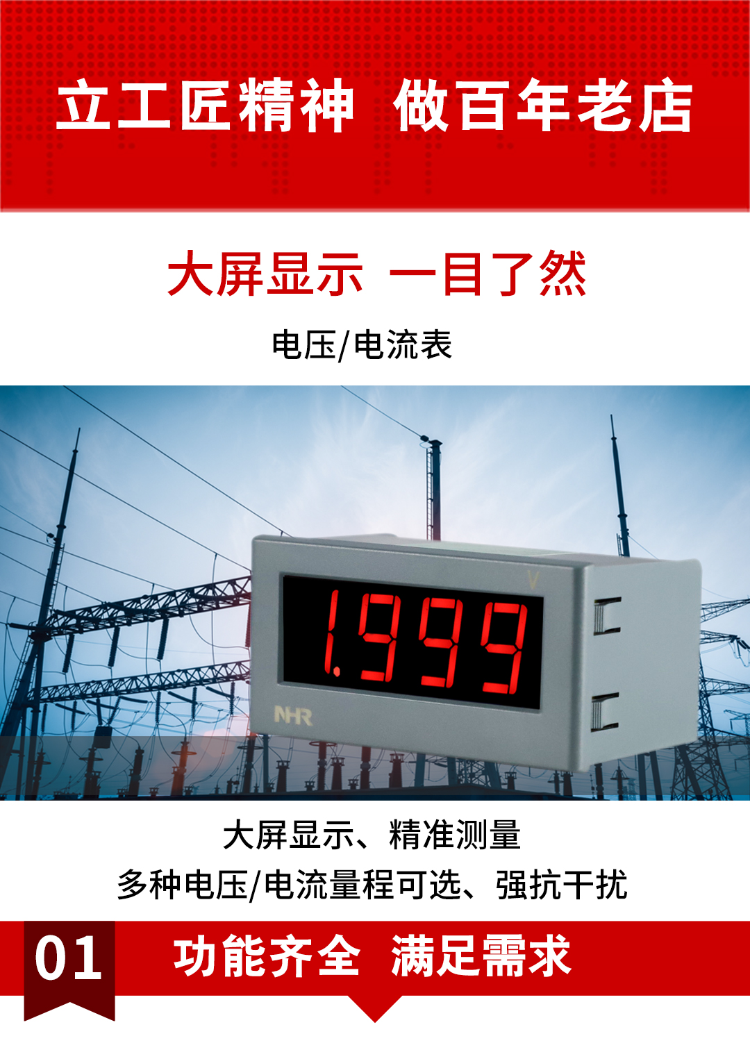 虹潤(rùn)公司是專業(yè)生產(chǎn)數(shù)字電壓表的國(guó)家專精特新“小巨人”企業(yè)。生產(chǎn)的電壓/電流表,具有大屏LED顯示,交直流電壓/電流輸入,免設(shè)置易接線,性價(jià)比高等特點(diǎn)。產(chǎn)品獲得一種交流信號(hào)變送器、交直流信號(hào)轉(zhuǎn)換電路、基于DCS技術(shù)的盤裝式三相電量表等3項(xiàng)國(guó)家發(fā)明專利,主持起草現(xiàn)場(chǎng)設(shè)備集成等5項(xiàng)智能制造國(guó)家標(biāo)準(zhǔn),物聯(lián)網(wǎng)電流變送器規(guī)范、物聯(lián)網(wǎng)總體技術(shù)智能傳感器特性與分類等2項(xiàng)國(guó)家標(biāo)準(zhǔn),以及直流漏電流傳感器規(guī)范、通信系統(tǒng)多通道數(shù)據(jù)采集控制終端規(guī)范等2項(xiàng)軍用標(biāo)準(zhǔn),參與國(guó)際5G標(biāo)準(zhǔn)制定。產(chǎn)品廣泛應(yīng)用于電力系統(tǒng)、工業(yè)制造、自動(dòng)化設(shè)備、計(jì)量檢測(cè)等各種工業(yè)領(lǐng)域。