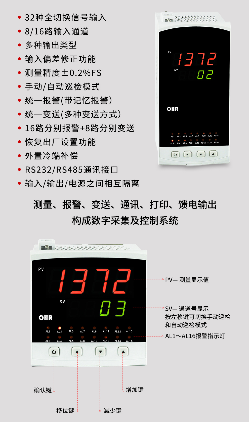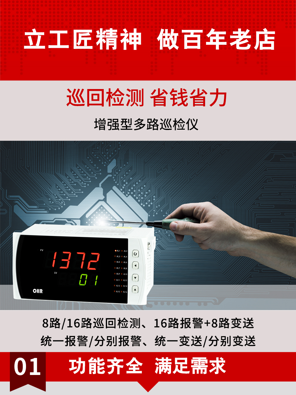 虹潤公司是專業(yè)生產多路溫度巡檢儀的國家專精特新“小巨人”企業(yè),生產的增強型多路巡檢儀,具有8路/16路測量通道,全切換信號輸入,多種輸出類型,高抗干擾,RS485/RS232通訊等特點。產品獲得巡回檢測顯示方法及裝置、儀表殼體等2項國家發(fā)明專利,主持起草工業(yè)過程控制系統(tǒng)用模擬輸入兩位或多位輸出儀表、物聯(lián)網(wǎng)智能溫度儀表通用技術條件等2項國家標準,以及通信系統(tǒng)多通道數(shù)據(jù)采集控制終端規(guī)范軍用標準,參與國際5G標準制定,取得多回路測量顯示控制儀等3項相關軟件著作權。產品廣泛應用于電力、石化、冶金、制藥、水處理、機械配套等各種工業(yè)現(xiàn)場。