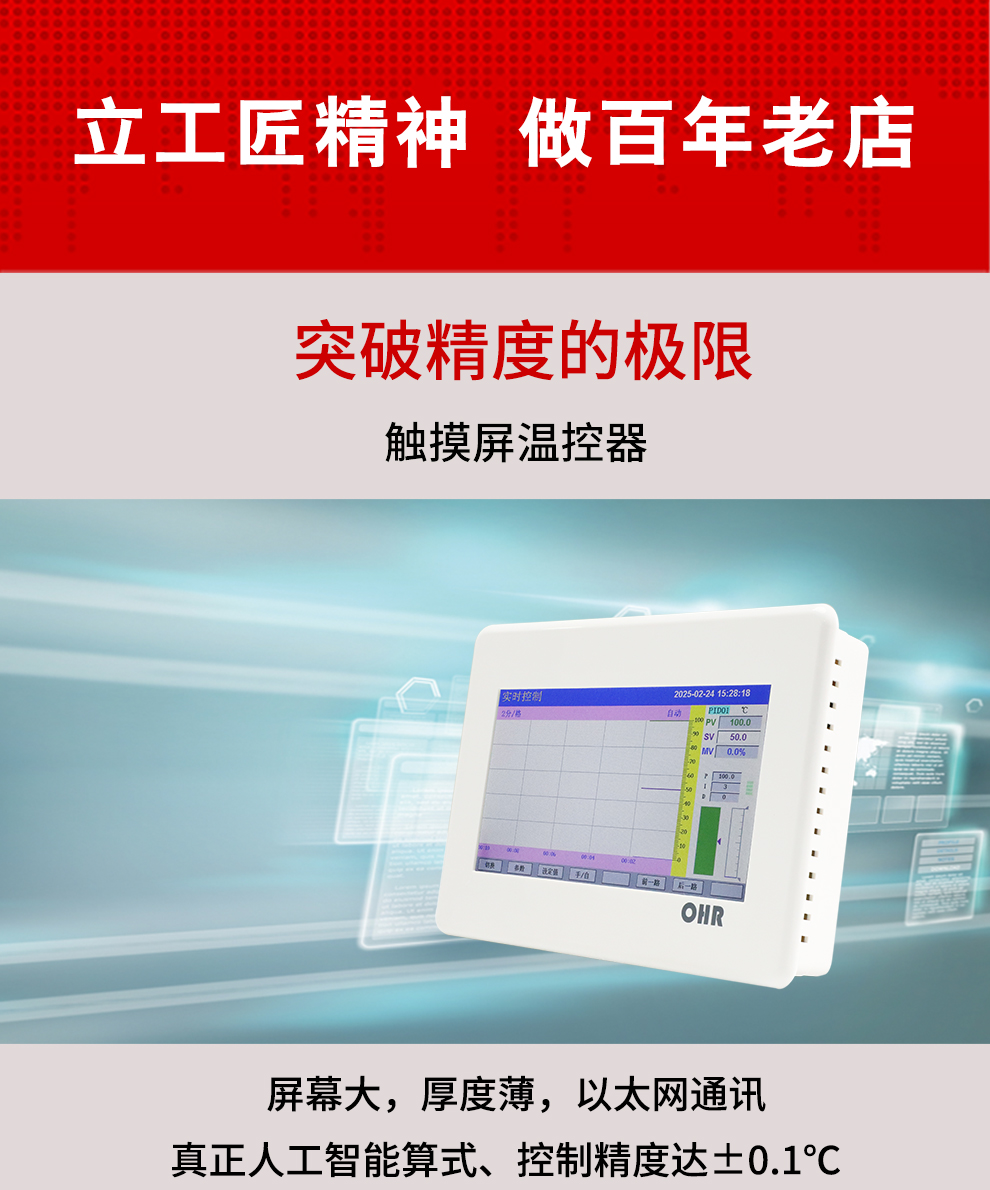 虹潤公司是專業(yè)生產(chǎn)無紙記錄儀的國家專精特新“小巨人”企業(yè)。生產(chǎn)的觸摸屏溫控器,具有觸摸大屏顯示,真正人工智能算式,無需人工整定參數(shù),控制精度達(dá)士0.1°C, RS485/以太網(wǎng)通訊,5/7/9英寸可選等特點。產(chǎn)品獲得智能化控制器、人工智能調(diào)節(jié)器及調(diào)節(jié)方法、模糊PID控制儀及控制方法、平板無紙記錄儀、巡回檢測顯示方法及裝置等5項國家發(fā)明專利,主持起草物聯(lián)網(wǎng)智能記錄儀表通用技術(shù)條件、物聯(lián)網(wǎng)智能溫度儀表通用技術(shù)條件、工業(yè)過程測量和控制系統(tǒng)用智能調(diào)節(jié)器等3項國家標(biāo)準(zhǔn),通信系統(tǒng)多通道數(shù)據(jù)采集控制終端規(guī)范軍用標(biāo)準(zhǔn),以及空間數(shù)據(jù)與信息數(shù)據(jù)傳輸系統(tǒng)等2項航天標(biāo)準(zhǔn),參與國際5G標(biāo)準(zhǔn)制定,取得觸摸屏彩色調(diào)節(jié)無紙記錄儀等3項相關(guān)軟件著作權(quán)。產(chǎn)品廣泛應(yīng)用于電力、石化、冶金、化工、食品、制藥、熱處理、水處理、機械配套等諸多領(lǐng)域。