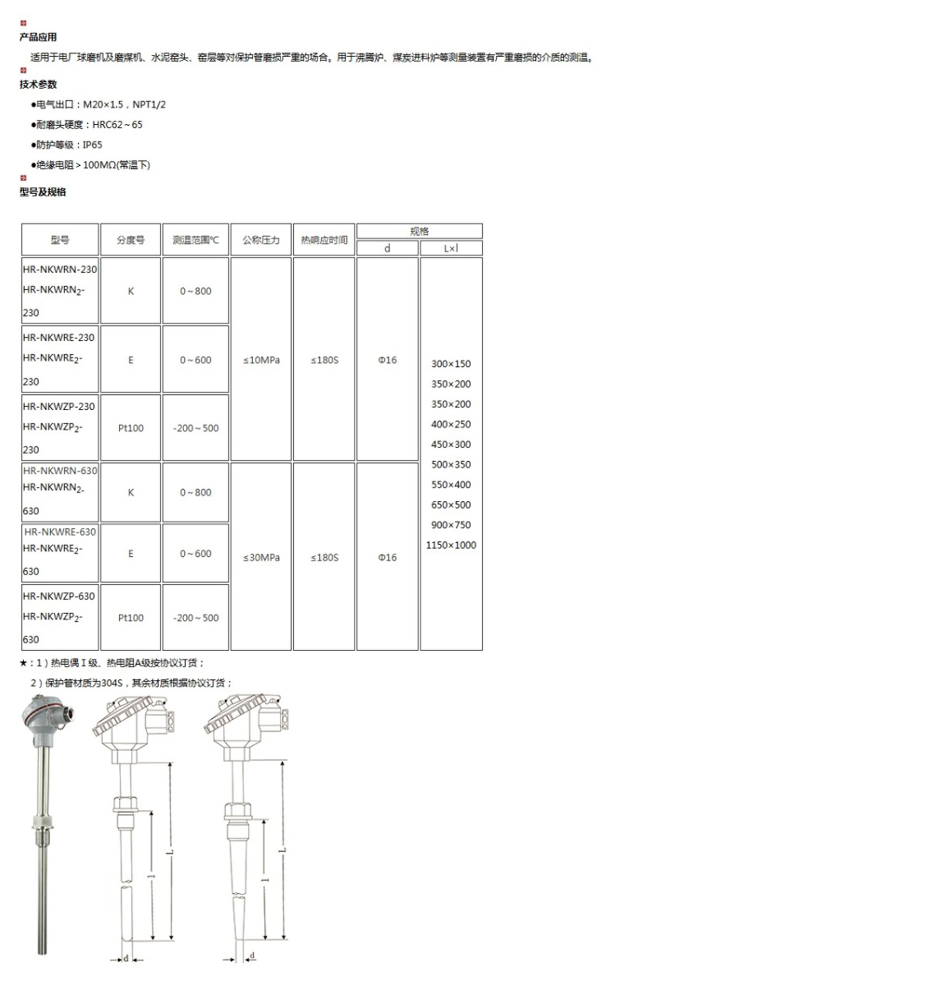 耐磨熱電偶(阻)采用等離子噴漆技術(shù)、高鉻鑄鐵和高溫合金不同材料制成的耐磨保護(hù)管,專門為高、中、低溫耐磨環(huán)境的測量場合設(shè)計(jì)制造的,可適用于循環(huán)流化床、沸騰爐、水泥回轉(zhuǎn)窯尾煙室