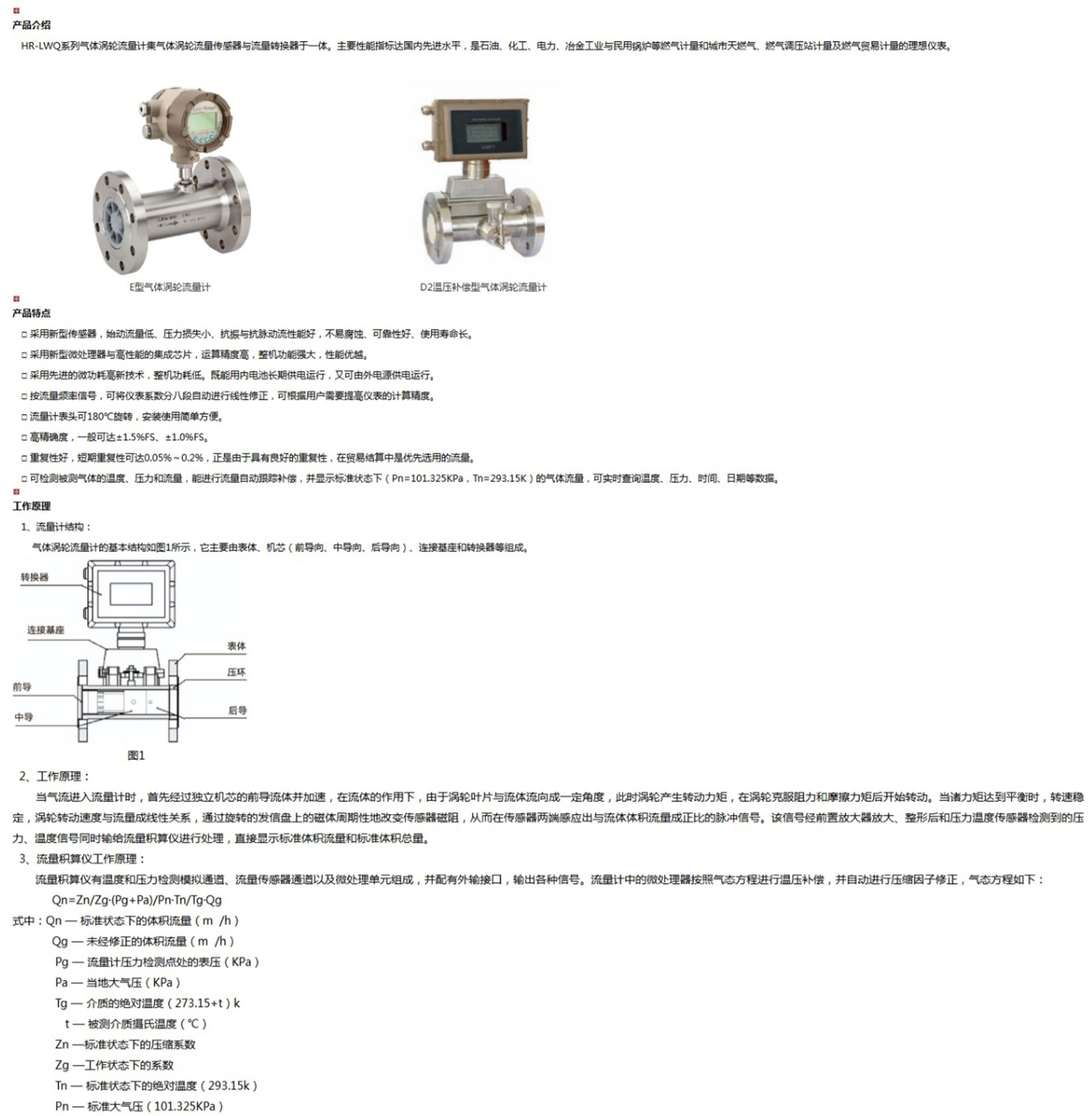 HR-LWQ系列氣體渦輪流量計集氣體渦輪流量傳感器與流量轉換器于一體。主要性能指標達國內先進水平,是石油、化工、電力、冶金工業(yè)與民用鍋爐等燃氣計量和城市天燃氣、燃氣調壓站計量及燃氣貿易計量的理想儀表。
