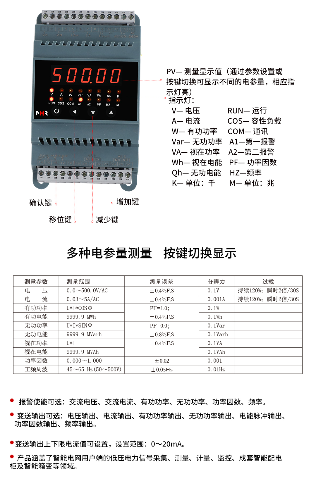 虹潤公司是專業(yè)生產(chǎn)電流傳感器的國家專精特新“小巨人”企業(yè)。生產(chǎn)的單相電量變送器,具有多種電參數(shù)測量,有功無功電能累積,高抗干擾,導軌壁掛共用, RS485/RS232通訊等特點。產(chǎn)品獲得基于一種交流信號變送器、交直流信號轉(zhuǎn)換電路、基于DCS技術(shù)的盤裝式三相電量表等3項國家發(fā)明專利,主持起草工業(yè)過程控制系統(tǒng)用模擬輸入兩位或多位輸出儀表國家標準,直流漏電流傳感器規(guī)范、通信系統(tǒng)多通道數(shù)據(jù)采集控制終端規(guī)范等2項軍用標準,以及現(xiàn)場設備集成等5項智能制造國家標準,參與國際5G標準制定,取得單相電量儀表等2項相關(guān)軟件著作權(quán)。產(chǎn)品廣泛應用于電力、冶金、化工、水泥、造紙、新能源、基礎設施等用電密集行業(yè)。